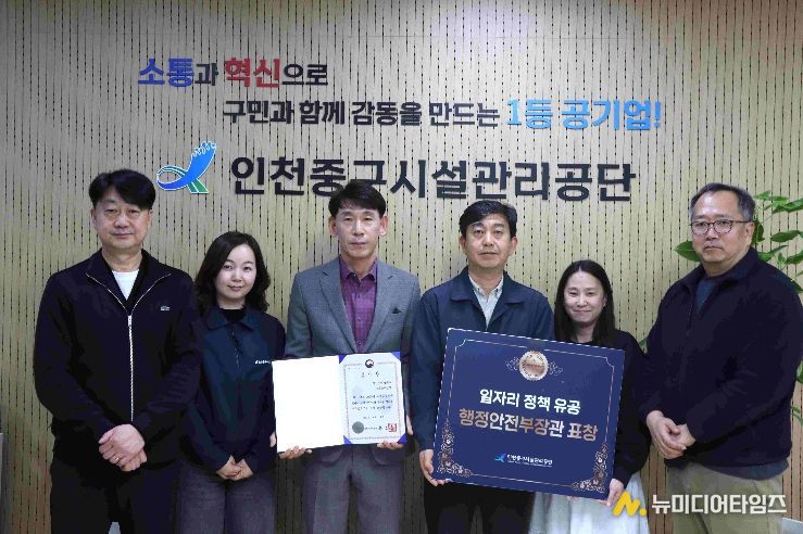 인천중구시설관리공단은 2025년 지방공공기관 일자리 정책 분야에서 행정안전부로부터 ‘일자리 정책 추진 유공’ 장관 표창을 받았다고 13일 밝혔다.