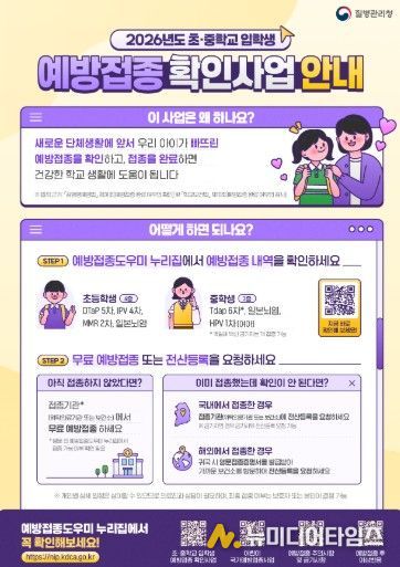 김포시는 13일, 2026학년 초·중학교 입학생을 대상으로 ‘예방접종 확인 사업’을 추진한다고 밝혔다. 이번 사업은 필수 예방접종 완료 여부를 확인하고 미접종자 및 접종이 지연된 학생에 대해 접종을 독려하기 위해 실시된다. 특히 단체생활을 시작하는 입학생 시기에 예방접종을 완료하도록 함으로써 감염병의 학교 내 확산을 사전에 차단하는 데 목적이 있다.