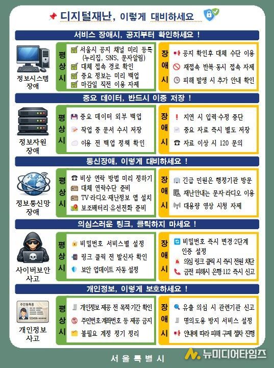 서울시는 디지털재난 발생 시 시민이 즉시 활용할 수 있는 행동요령도 체계적으로 마련했다. 이는 장애 발생 시 정보 부족으로 혼란이 확대되는 문제를 줄이고, 시민 스스로 대응할 수 있도록 하기 위한 것이다.