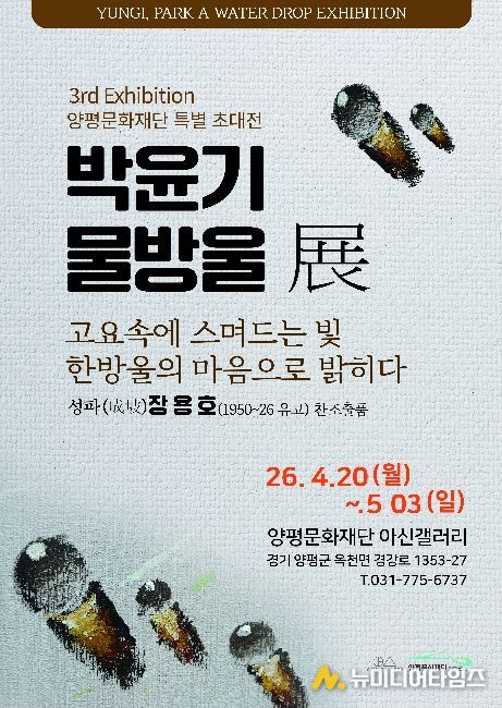 (재)양평문화재단은 2026년 상반기 아신갤러리 초대전으로 박윤기 작가의 개인전 ‘박윤기 물방울 전(展), 고요 속의 물방울’을 오는 4월 20일부터 5월 3일까지 개최한다고 밝혔다.