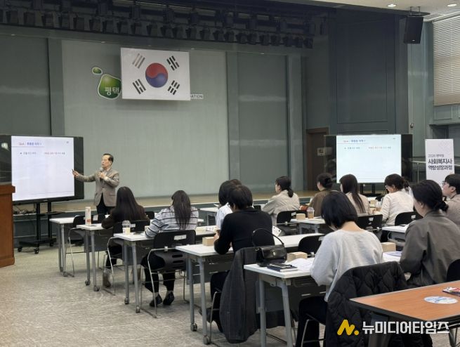 (재)평택복지재단은 4월 14일, 팽성복지타운 2층 대강당에서 관내 사회복지시설 종사자 50여 명을 대상으로 '2026년 사회복지사 역량성장 과정' 3회기 교육을 성공적으로 개최했다.
