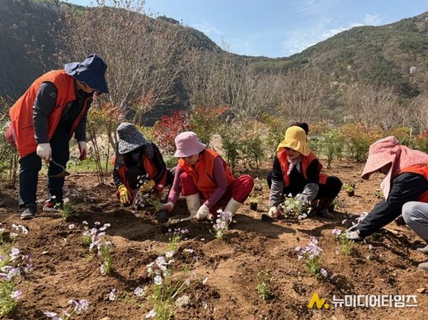단양군 영춘면 주민자치위원회는 영춘생활체육공원 일대에서 꽃밭 조성사업을 추진했다고 15일 밝혔다.