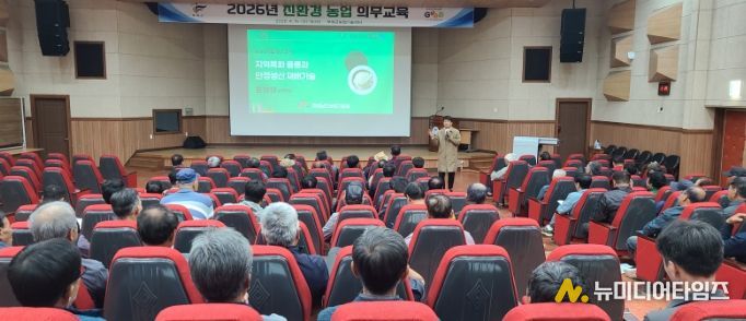 부여군은 지난 15일 오후 2시 농업기술센터 대강당에서 관내 친환경 농업인 및 교육 희망 농가 100여 명을 대상으로 ‘2026년 친환경 농업 의무교육’을 개최했다.