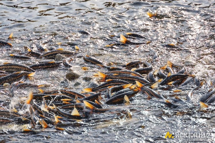 올해 남대천의 황어 소상은 지난 2021년 이후 5년 만에 가장 큰 규모를 자랑한다. 하천 바닥이 보이지 않을 정도로 빽빽하게 들어찬 황어 떼는 봄바람을 타고 힘차게 자갈밭을 거슬러 오르며 강한 생명력을 뿜어내고 있다.