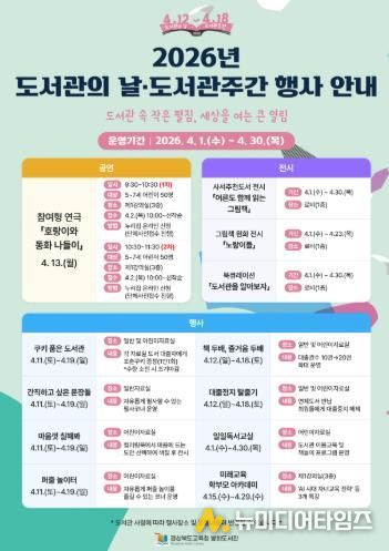 경상북도교육청 봉화도서관은 2026년 도서관의 날·도서관주간을 맞이하여 4월 12일부터 '도서관 속 작은 펼침, 세상을 여는 큰 열림'이라는 주제로 다양한 독서 문화 프로그램을 운영하고 있다.