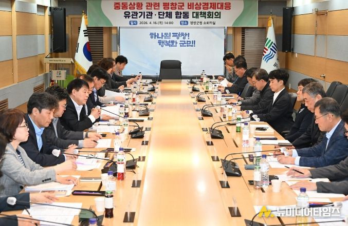 평창군은 16일 2시 중동 정세와 관련해 비상경제대응 TF 단장인 임성원 부군수 주재로 관계 기관, 경제단체, 수출입 기업 등이 참여하는 합동 대책 회의를 개최하고 대응 방안을 논의했다.