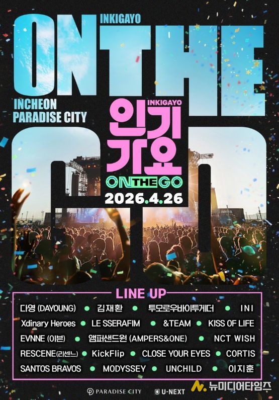오는 4월 26일(일) 인천 파라다이스시티에서 개최되는 ‘인기가요 ON THE GO’는 SBS 대표 음악 프로그램 ‘인기가요’의 스페셜 공연 프로젝트로, 기존 스튜디오 중심의 음악 방송을 넘어 팬들이 있는 곳으로 직접 찾아가는 콘셉트로 기획됐다. 생방송 현장의 에너지와 공연의 몰입감을 결합한 새로운 형태의 K-POP 공연으로, 아티스트와 관객이 더욱 가까이 호흡하는 특별한 경험을 선사할 예정이다.