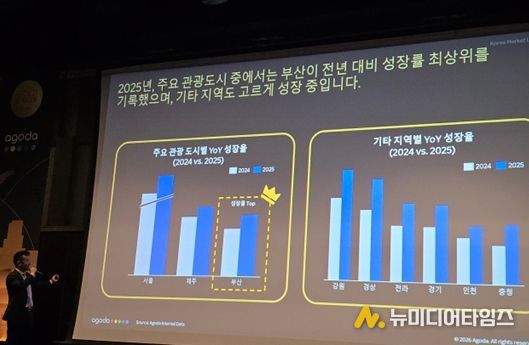 아고다(Agoda)는 다양한 국적의 여행객 유입 확대와 함께 전년 대비 숙소 검색량이 84퍼센트(%) 증가하는 등 한국 여행 수요가 지속적으로 늘고 있으며, 부산시의 적극적인 관광 정책과 지원이 숙박업계 경쟁력 강화와 방문객 유치 확대에 긍정적인 영향을 줬다고 밝혔다.