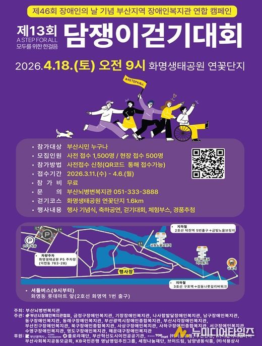 부산시는 장애인의 날(4.20.)을 맞이해 내일(18일) 오전 9시 화명생태공원에서 '제13회 담쟁이 걷기대회'가 열린다고 밝혔다.