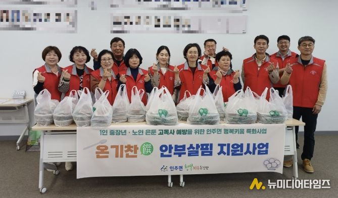 아산시 인주면 행복키움추진단은 지난 16일 1인 중장년 및 노인 가구의 사회적 고립을 방지하고 고독사를 예방하기 위한 읍면동 특화사업인 '온기찬 안부살핌 지원사업'을 실시했다.