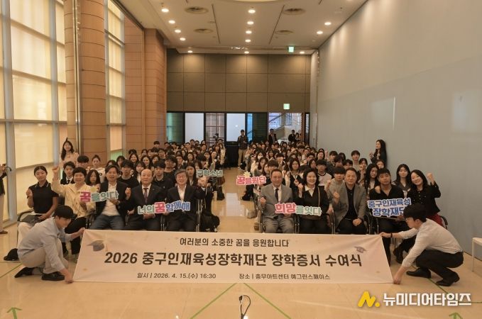 서울 중구는 중구인재육성장학재단이 장학생 178명에게 총 1억 5,970만 원의 장학금을 전달했다고 밝혔다. 재단은 지난 15일 오후 충무아트센터 예그린스페이스에서 ‘2026년 장학증서 수여식’을 개최했다.