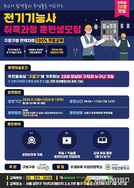구로구가 전기기능사 취득 과정 훈련생을 5월 29일까지 모집한다.
