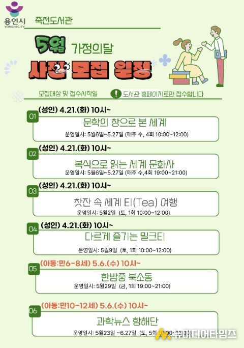 용인특례시 죽전도서관은 오는 5월 가정의 달을 맞아 ‘2026년 5월 독서문화행사’를 개최한다.