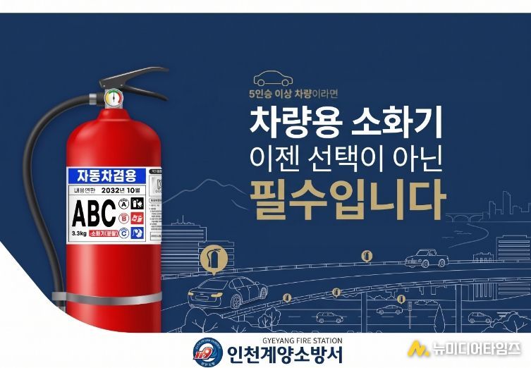 계양소방서(서장 송태철)는 완연한 봄을 맞아 주말 나들이 등 장거리 차량 이동이 증가함에 따라, 차량 화재 사고에 대비해 '차량용 소화기' 비치 및 상태 점검을 당부한다고 17일 밝혔다.