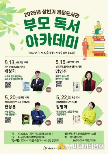 대전 동구는 자녀교육에 관심 있는 부모를 대상으로 전문가 초청 강연 프로그램인 2026년 상반기 ‘부모 독서 아카데미’를 운영한다고 17일 밝혔다.