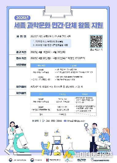 사업 참여를 희망하는 단체는 4월 30일 오후 5시까지 세종과학문화거점센터 홈페이지를 통해 접수하면 된다.