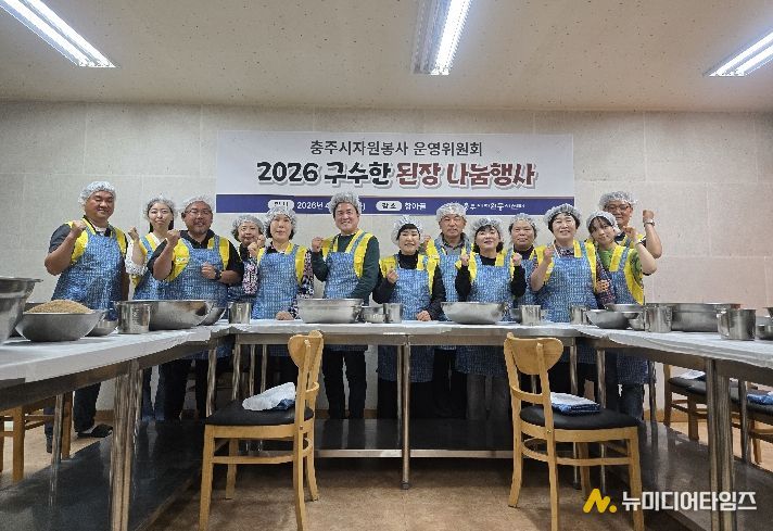 충주시자원봉사운영위원회(위원장 박영찬)는 지난 17일, 충주 항아골(대표 김명숙)에서 지역 내 소외계층의 건강한 식생활 지원을 위한 ‘2026 구수한 된장 나눔’ 행사를 가졌다.