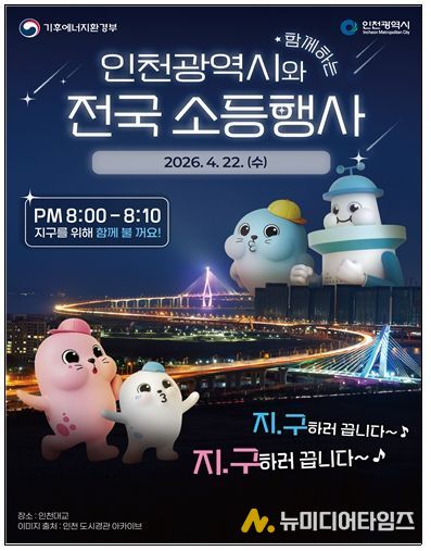 지구의 날 당일인 22일 오후 8시에는 이번 주간의 하이라이트인‘전국 소등 행사’가 열린다. 시청을 비롯한 공공기관과 인천대교, 송도 센트럴파크 등 지역 랜드마크는 물론, 주요 아파트 단지 등 민간 영역까지 참여해 10분간 불을 끄고 지구를 위한 휴식의 시간을 갖는다.