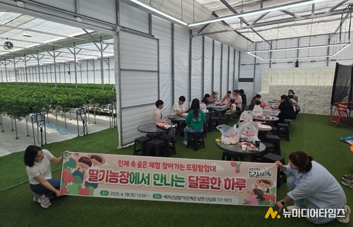 이어 18일에는 7가정, 18명이 참여한 가운데, 남면 베리신남딸기 농장에서 ‘딸기농장에서 만나는 달콤한 하루’ 프로그램이 진행됐다.