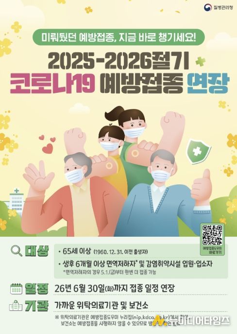 용인특례시는 여름철 코로나19 재유행에 대비해 ‘2025-2026절기 코로나19 예방접종’ 기간을 기존 4월 30일에서 6월 30일까지 연장한다고 20일 밝혔다.