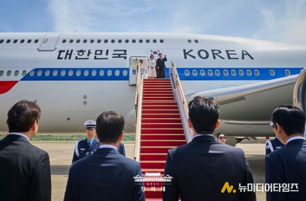이재명 대통령과 김혜경 여사는 5박 6일 일정의 인도 및 베트남 국빈 방문을 위해 19일 경기 성남 서울공항에서 대통령 전용기(공군 1호기)를 이용해 출국했다.