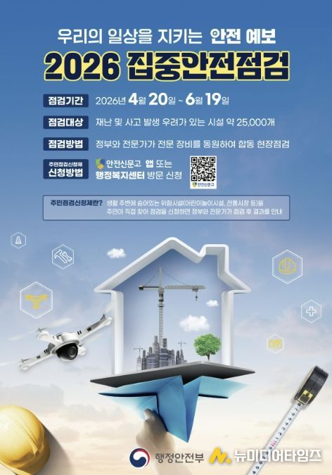 삼척시가 각종 재난과 사고를 예방하고 시민의 안전의식을 높이기 위해 4월 20일부터 6월 19일까지 ‘2026년 집중안전점검’을 실시한다.