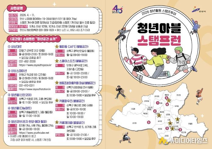 한편 ‘청년마블 스탬프런’ 사업에 대한 자세한 사항은 안산시청 누리집에서 확인할 수 있으며, 스탬프북은 관내 청년공간과 각종 청년 행사·축제 현장에서 받을 수 있다.