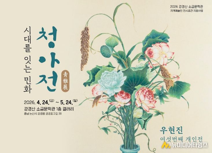 첫 번째로 개최되는 우현진 작가의 한국 전통 민화 전시는 전통 민화가 지닌 상징성과 의미를 오늘의 감각으로 다시 바라보고, 과거와 현재를 하나의 화면 안에서 이어가는 ‘시대를 잇는’ 작품들로 구성된다. 전시는 2026년 4월 24일(금)부터 5월 26일(화)까지 강경산소금문학관 지하 1층 갤러리에서 진행되며, 매주 월요일은 휴관이다.