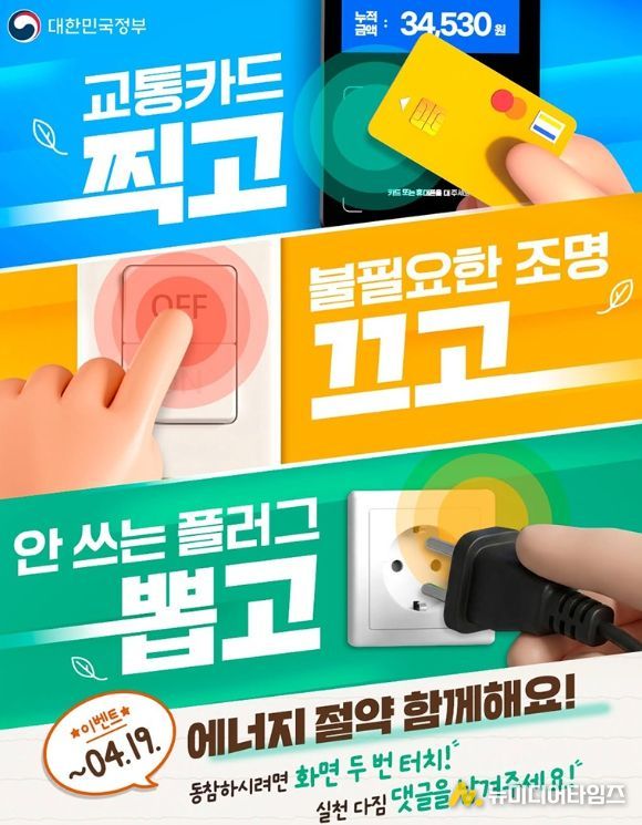 아울러 청사 내 불필요한 전력 소모를 줄이기 위해 대기전력 차단, 조명 일부 점등, 중식시간 사무실 조명 전체 소등, 옥외 경관조명 점등시간 조정(단축), 계단 이용 권장, 부서별 에너지지킴이 지정 등 세부 절약 수칙도 시행 중이다.
