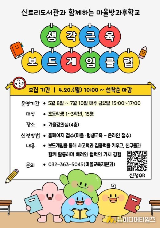 인천광역시교육청신트리도서관은 20일부터 어린이의 인지 발달과 사회성 함양을 위한 ‘생각 근육 보드게임’ 참가자를 모집한다.