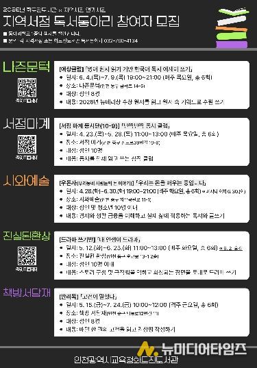 도서관 관계자는 “지역 서점이 책을 판매하는 공간을 넘어 창작과 소통이 이루어지는 독서문화 거점이 되길 바란다”며 “이번 사업으로 지역 주민이 서로 연결되고 자신의 이야기를 펼칠 수 있는 계기가 되기를 기대한다”고 밝혔다.