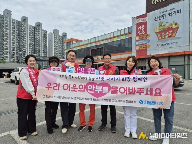 유공수 초평동 지역사회보장협의체 민간위원장은 “캠페인 활동을 통해 도움이 필요한 이웃을 조기에 발굴하고 지역 내 나눔 문화를 더욱 확대할 수 있는 뜻깊은 계기가 마련됐다”며 “앞으로도 지속적인 캠페인 활동을 이어가 따뜻한 손길이 끊이지 않는 지역사회를 만드는 데 최선을 다하겠다”고 말했다.