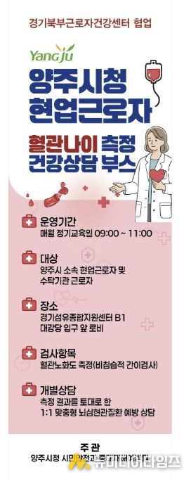 양주시가 현업근로자의 건강 증진과 뇌심혈관계질환 예방을 위해 오는 4월 22일부터 연말까지 ‘찾아가는 근로자 건강상담 부스’를 운영한다.
