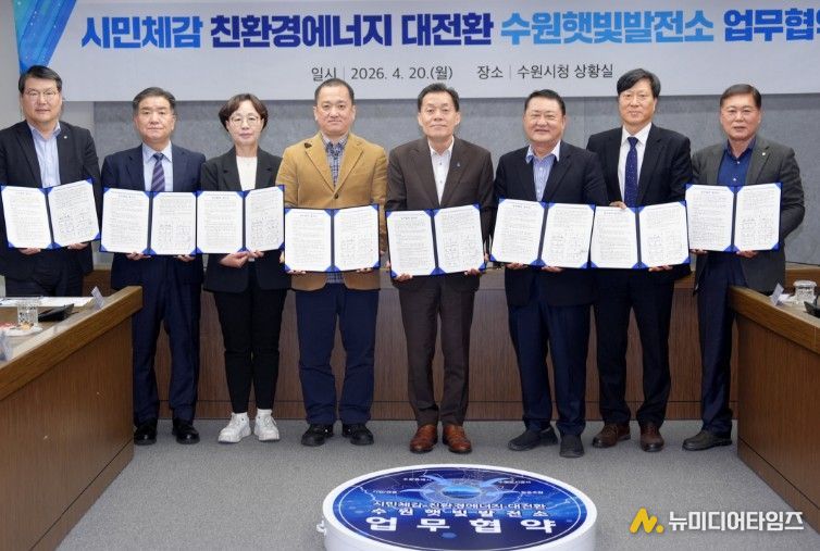 협약식에는 이재준 수원특례시장과 이영인 수원도시공사 사장, 윤은상 수원시민햇빛발전 사회적협동조합 이사장, 조영미 수원에너지협동조합 이사장, 정근우 기후시민에너지협동조합 이사장, 김재옥 수원상공회의소 회장, 정인 수원산업단지관리공단 이사장, 최공환 아이비케이(IBK) 기업은행 동수원지점장이 참석했다.