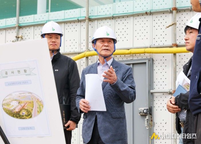 안산시의회 박태순 의장이 20일 단원구 초지동 4·16생명안전공원 건립공사 현장을 방문해 공사 진행 상황을 점검하고 안전 시공과 원활한 자재 수급을 당부했다.