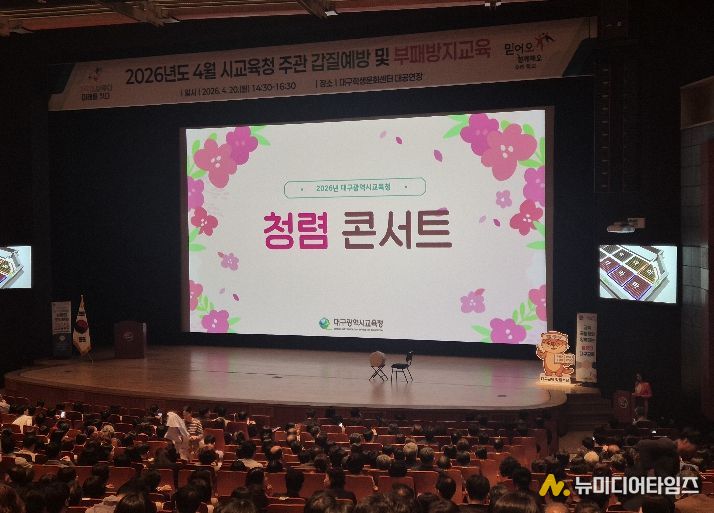 대구시교육청은 4월 20일 오후 2시 30분부터 대구학생문화센터 대공연장에서 교직원 및 관리자 등을 대상으로 ‘청렴콘서트’를 개최했다.