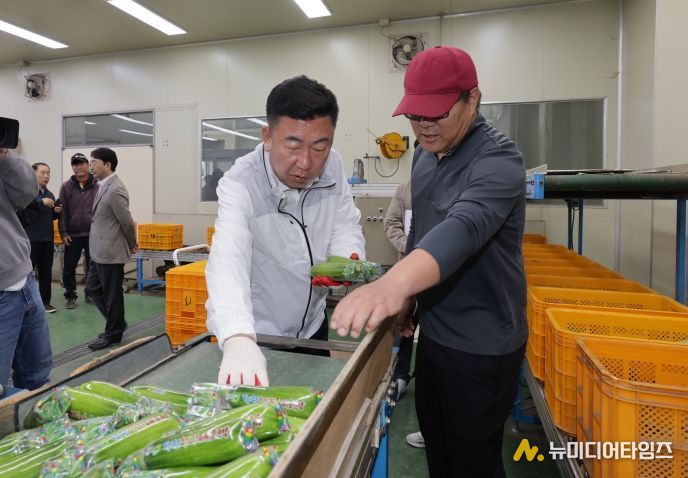 이범석 청주시장은 20일 흥덕구 오송읍에 위치한 청원생명 애호박 공동선별장을 방문해 공선 및 유통 현황을 점검하고 관계자와 지역 농민들을 격려했다.