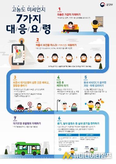 황사 발생 중 국민행동 요령은 ▲가정에서 창문을 닫고 가급적 외출을 삼가되 외출 시 보호안경․마스크 착용 ▲황사에 노출된 농수산물 충분히 세척한 후 섭취 ▲어린이집과 각급학교의 실외활동 금지와 수업 단축 또는 휴업 ▲비닐하우스, 온실, 축사의 출입문과 창문을 닫고 외부 공기와 접촉 줄이기 등이다.
