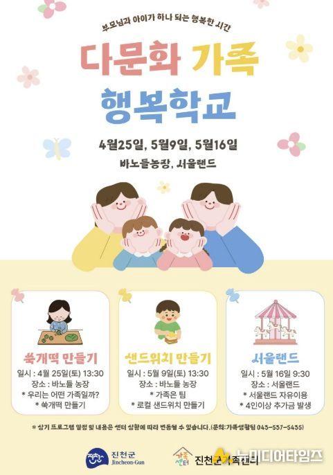 충북 진천군가족센터는 진천군의 지원을 받아 다문화가족의 건강한 가족관계 형성과 정서적 유대 강화를 위한 ‘2026년 다문화가족 행복학교’를 운영한다고 밝혔다.