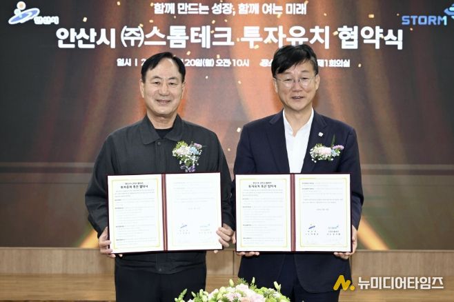 안산시는 지난 20일 코스닥 상장기업 ㈜스톰테크와 제2공장 신축 및 투자 확대를 위한 협약을 체결했다고 21일 밝혔다.
