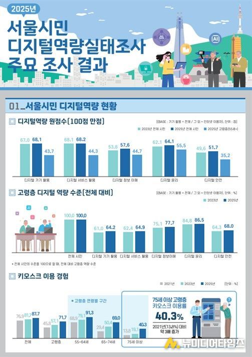 ‘서울시민 디지털역량실태조사’는 시민의 디지털 활용 수준과 인식, 디지털 격차 등을 종합적으로 파악하기 위해 2021년부터 격년으로 실시되고 있으며, 2025년에는 19세 이상 서울시민 5,500명(55세 이상 고령층 2,500명 포함) 대상의 가구 방문 면접조사 방식으로 진행됐다.