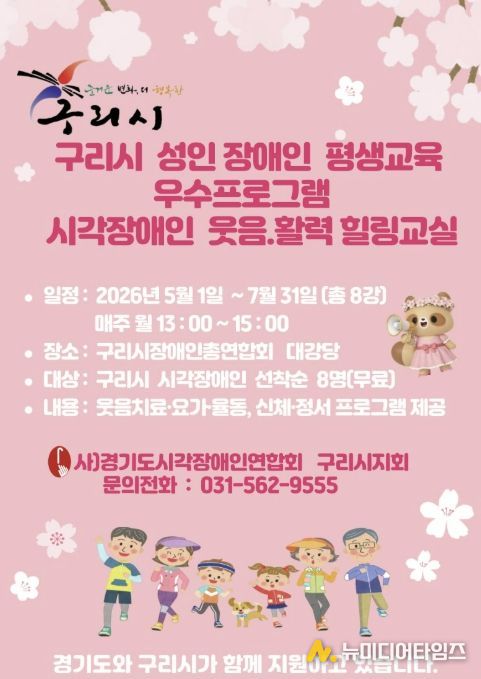 사단법인 경기도시각장애인연합회 구리시지회는 구리시와 경기도의 지원을 받아 2026년 5월부터 ‘시각장애인 웃음·활력 힐링 교실’을 운영할 예정이라고 밝혔다.