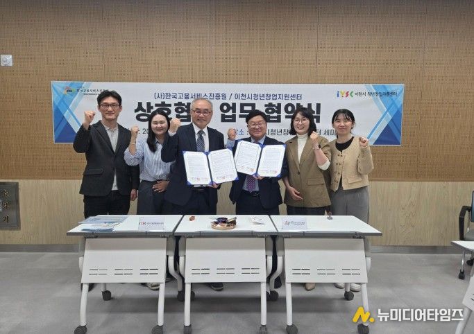 이천시는 청년 취업 및 창업 지원 강화를 위해 사단법인 한국고용서비스진흥원과 이천시 청년창업지원센터가 지난 4월 15일 센터 세미나실에서 업무협약(MOU)을 체결했다고 밝혔다.