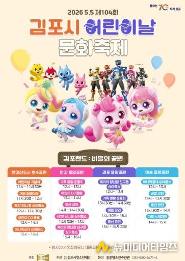 오는 5월 5일, 김포 전역이 하나의 거대한 놀이공원이 된다. 김포시는 시가 주최하고 김포시청소년재단에서 주관하는 제104회 어린이날 문화축제가 한강신도시호수공원(마산동), 한강중앙공원(장기동), 걸포중앙공원(걸포동), 마송중앙공원(통진읍)에서 동시 개최된다고 20일 밝혔다.