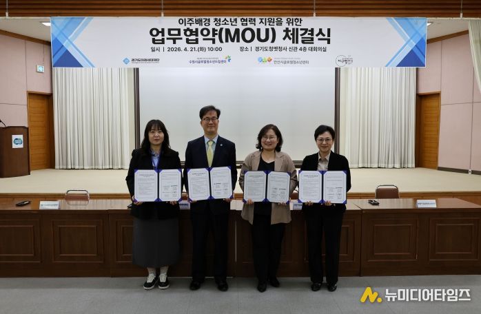 경기도미래세대재단은 21일 수원시 팔달구 옛 경기도청사에서 수원시글로벌청소년드림센터, 안산시글로벌청소년센터, 화성시글로벌청소년센터와 이주배경 청소년 지원을 위한 업무협약을 체결했다.