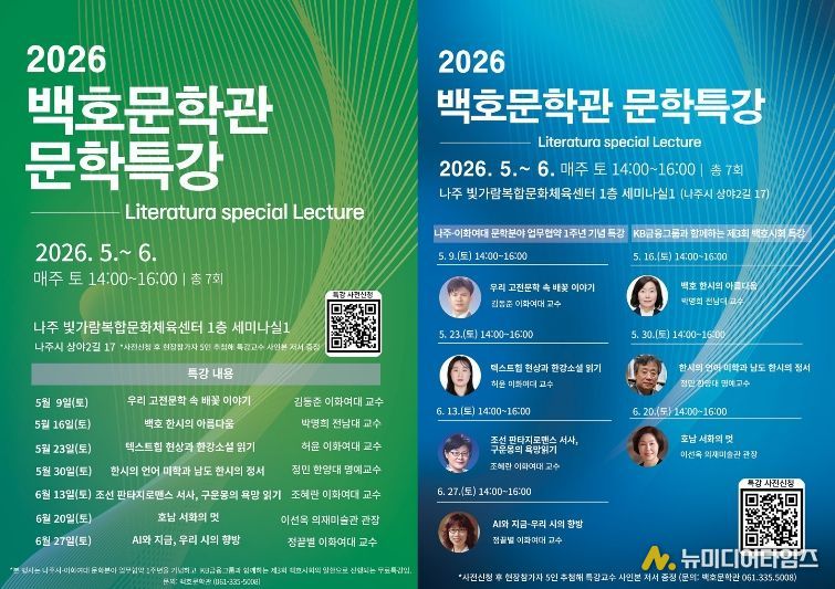 전남 나주시가 백호문학관에서 이화여자대학교와 함께 고전부터 현대, 미래 문학까지 아우르는 K-문학특강을 운영하며 시민 대상 문학 향유 기회를 확대한다.