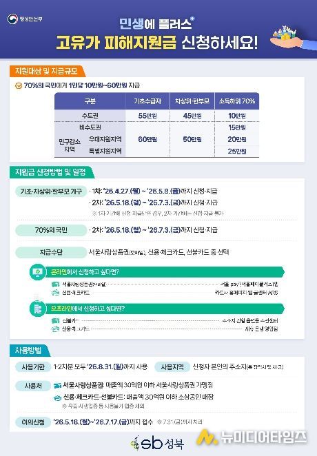 서울 성북구가 고유가 피해지원금 신청을 오는 4월 27일부터 접수한다.