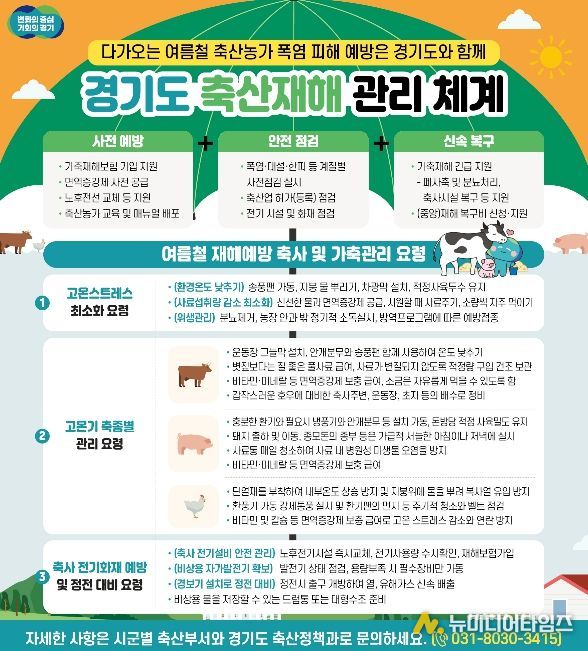 경기도가 올여름 무더위로부터 축산농가를 보호하기 위해 예산 지원과 현장점검을 아우르는 전방위적 대응에 나섰다.