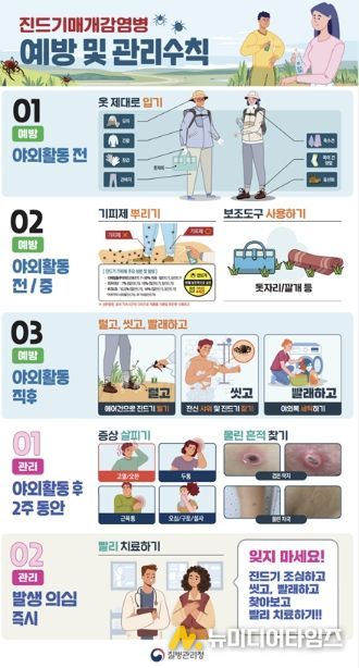 이형정 시흥시보건소장은 “봄철 농작업과 등산, 산책 등 야외활동이 늘어나는 시기인 만큼 진드기 예방수칙을 철저히 준수해야 한다”라며 “의심 증상이 있으면 신속히 의료기관을 방문해 조기 진단과 치료를 받는 것이 중요하다”라고 강조했다.