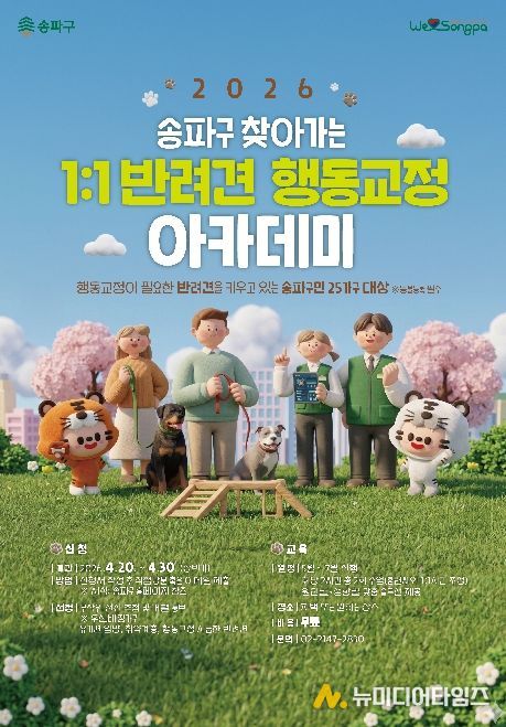 송파구 관계자는 “반려견 문제행동은 전문가의 손길이 닿으면 강아지도, 보호자도, 이웃도 모두 편안해진다”라며 “성숙한 반려 문화를 만드는 데 송파구가 든든한 동반자가 되겠다”라고 전했다.